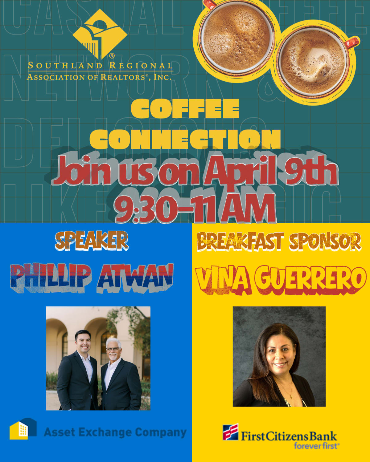 Wake Up. Connect. Collaborate. Because what’s better than coffee and breakfast at home? ☕ Building your real estate network with professionals who share your drive for success — over a fresh cup of coffee! Jumpstart your morning with meaningful conversations, new connections, and business opportunities at Coffee Connection, SRAR’s newest monthly networking event! Here’s how to get involved: Showcase your listings or share your buyer needs with fellow REALTORS® Meet and collaborate with other driven professionals Affiliates: Stand out! Bring a small giveaway for our raffle and introduce your services to the group Fuel your morning with free coffee and breakfast treats Mark your calendar and make it happen! 📅 2nd Thursday 🕤 9:30 AM – 11:00 AM 📍 SRAR Lake Balboa, 7232 Balboa Blvd., Van Nuys, CA 91406 ✅ Bring a friend. Grow your network. Spark new opportunities. Let’s make connections that count — see you there!