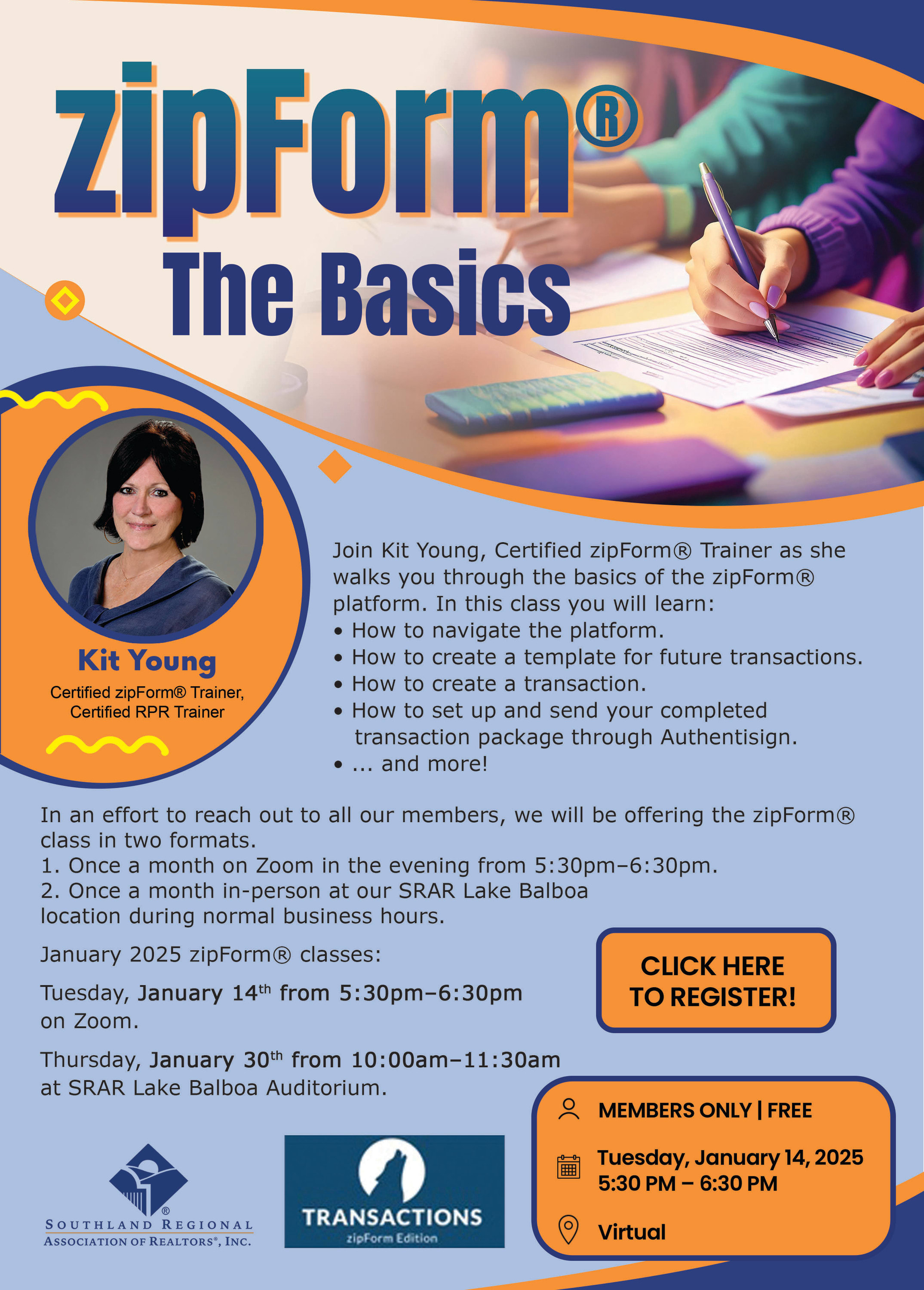 In an effort to reach out to all our members, we will be offering the zipForm® class in two formats.