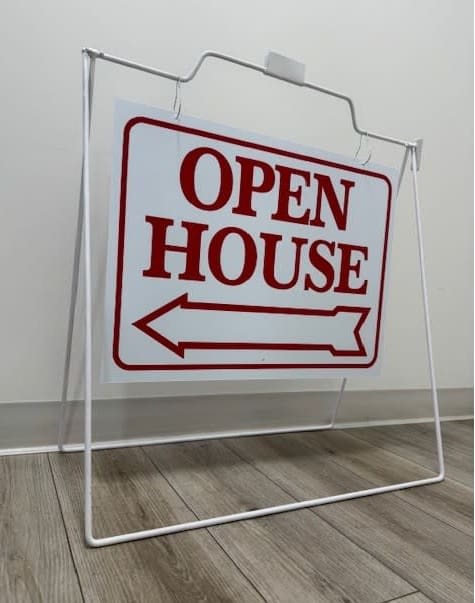 METAL A - FRAME OPEN HOUSE STANDS RED AND WHITE SIGN - WHITE FRAME <SKU: 135>